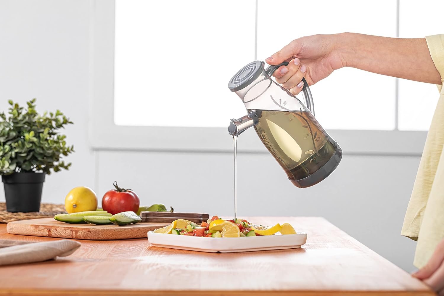 • Design: Controlled pouring of oil or other liquids with an ergonomic design and a safe, easy-pour spout.