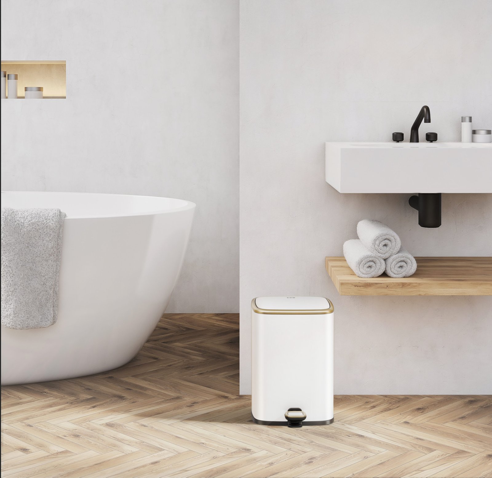 - A sturdy pedal makes your daily cleanup more convenient and hygienic by letting you open the bin without ever using your hands.