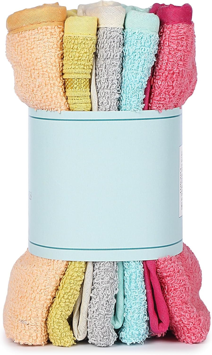 - Five face towels in a pack that are multipurpose.