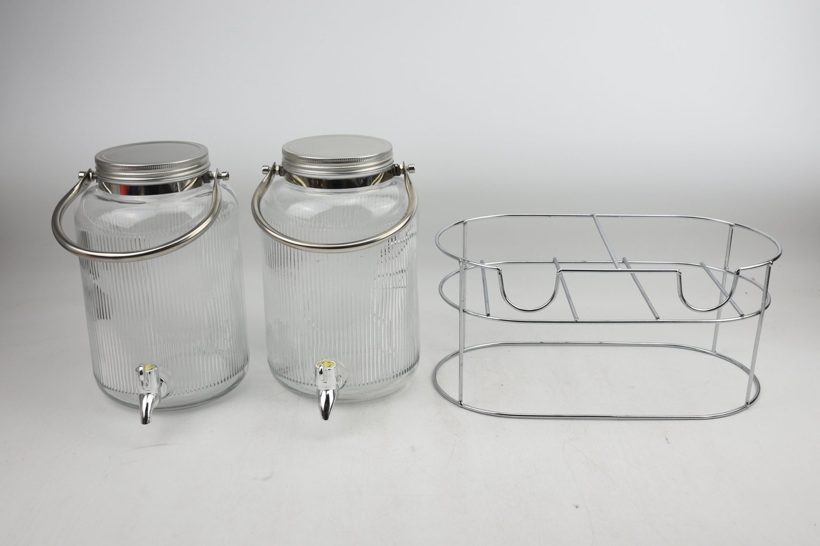 ORCHID DUAL 4L GLASS DISPENSER WITH METAL HANDLE AND STAND