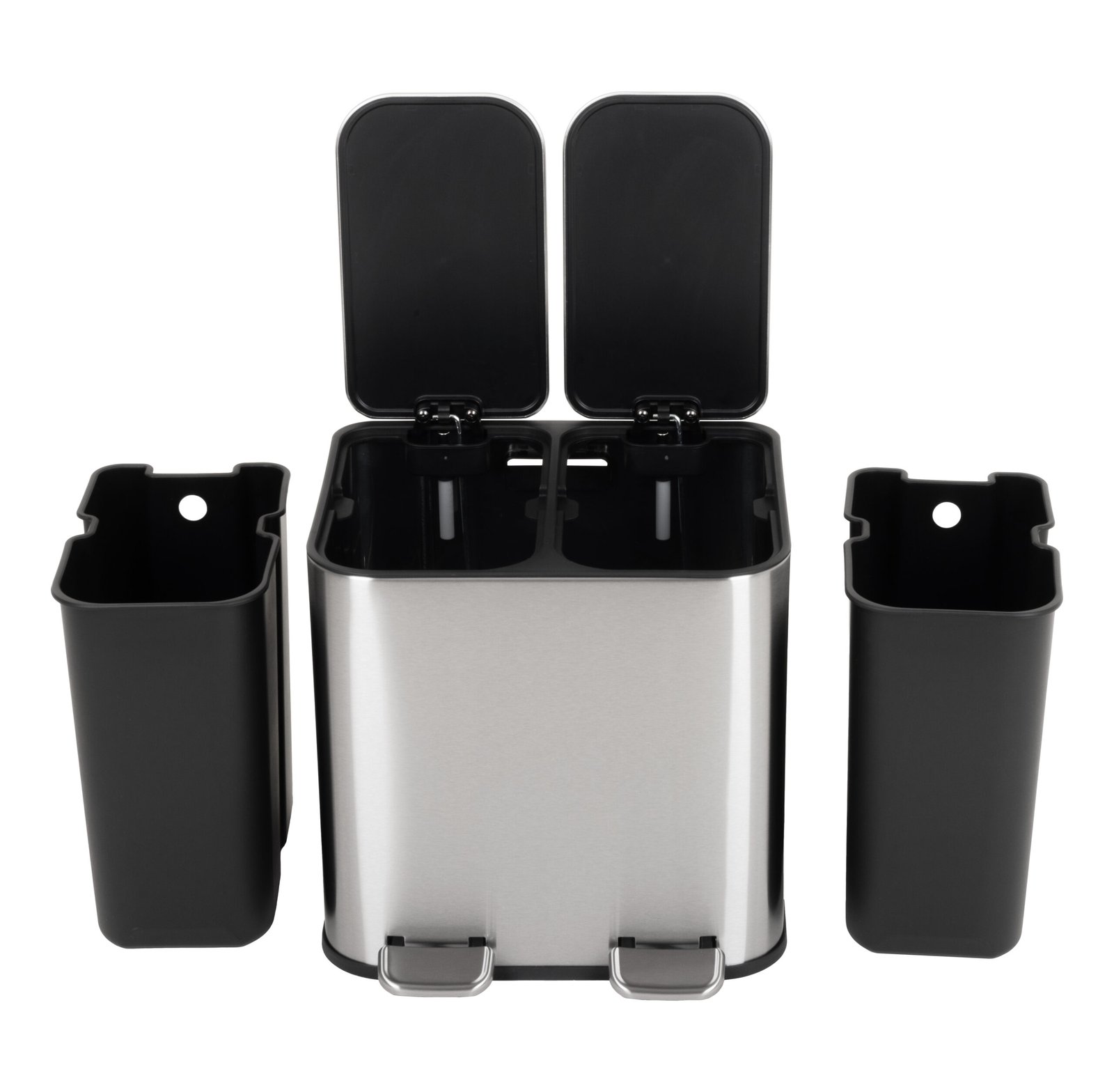 • The dual trash can provides two pedals for non-freehand use. Promoting clean and hygienic use without touching the bin.