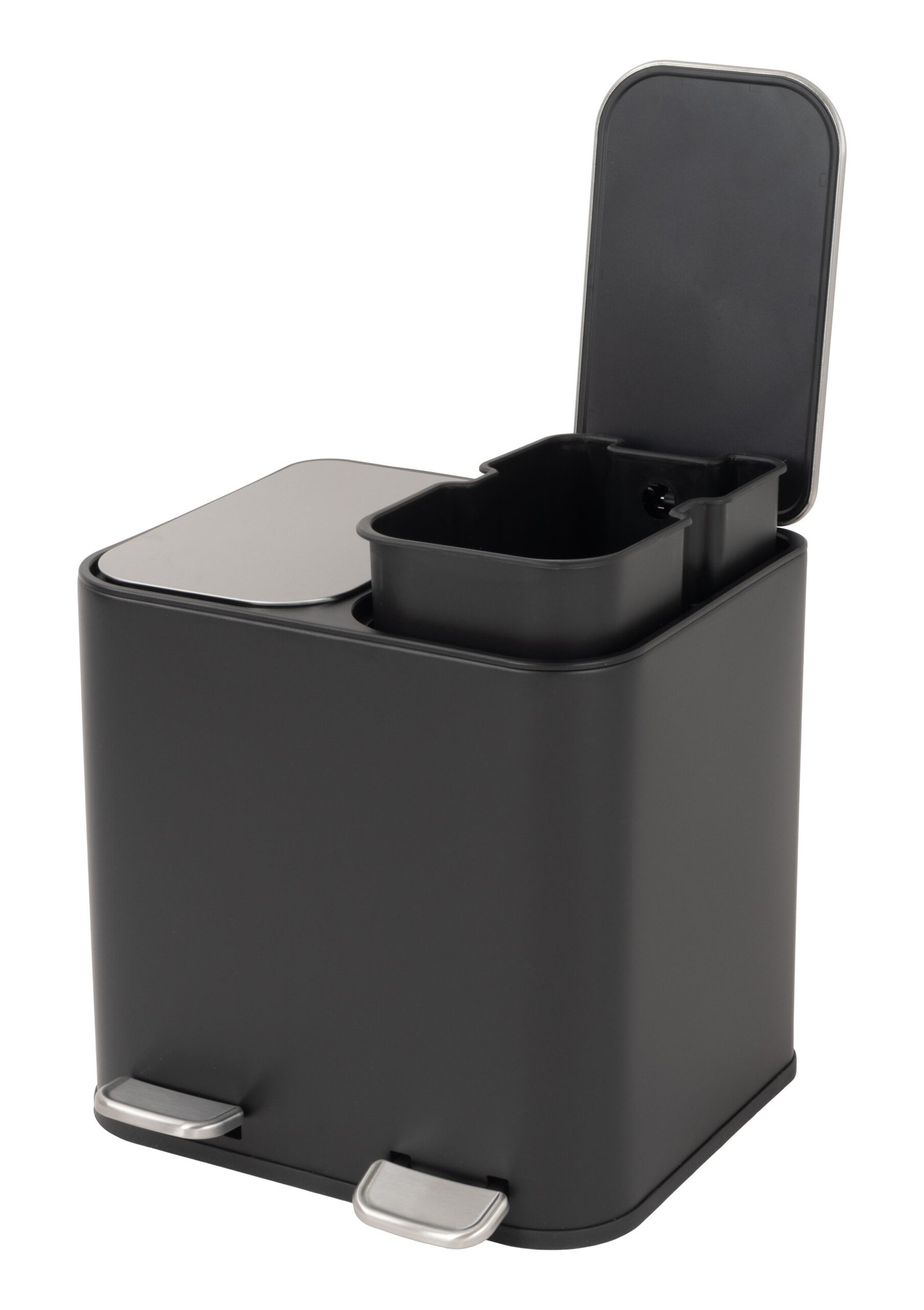 • The bin contains dual compartments to help you separate recyclable and non-recyclable waste